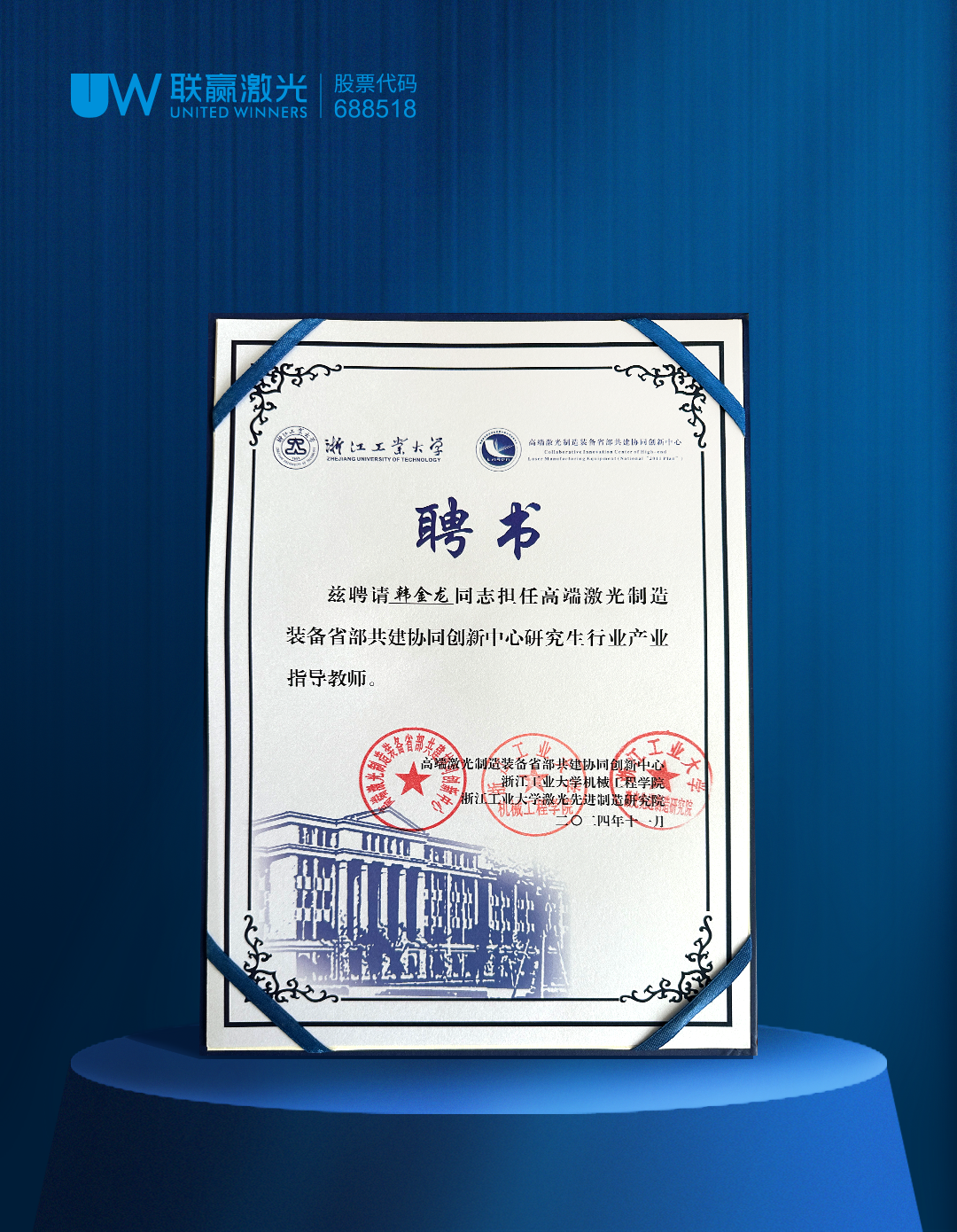 In this collaboration, Zhejiang University of Technology has officially appointed UW Laser as a member of the "Provincial-Ministerial Collaborative Innovation Center for Advanced Laser Manufacturing Equipment." It aims to jointly promote innovation and development in the fields of laser technology and intelligent manufacturing.