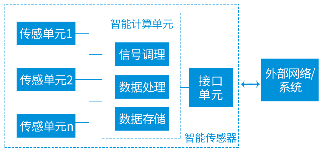 传感器集成传感芯片、通信芯片、微处理器、驱动程序、软件算法等于一体,具有信息采集、信息处理、信息交换、信息存储等功能。