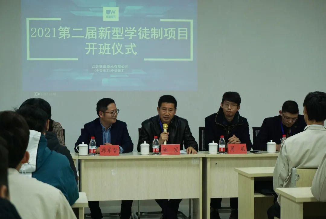 为了贯彻落实江苏省人力资源和社会保障厅、江苏省财政厅印发的《省人力资源社会保障厅省财政厅关于印发江苏省企业新型学徒制工作实施方案》有关要求,按照市人社局的统一安排部署,12月3日下午,江苏乐鱼leyu激光有限公司(下称:江苏乐鱼leyu)联合常州机电职业技术学院(下称:常州机电)共同举行2021年江苏乐鱼leyu新型学徒制开班仪式,江苏乐鱼leyu、常州机电等相关领导出席开班仪式。