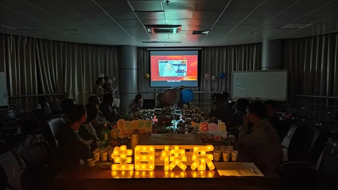 生日会现场,非常高兴收到贾松总经理和牛增强副董事长向全场本月生日的寿星们致以真诚的线上祝福。