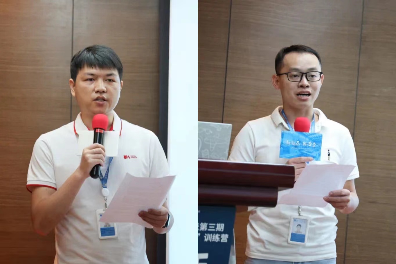 来自新能源汽车事业部付工和新能源装备事业部张工分别代表各部门辅导员和直属经理,为我们讲述了自己与乐鱼leyu的故事,以亲身经历鼓励大家,学会沉淀,多学好问。通过自身的努力,一定能得到属于自己的那份荣耀,在乐鱼leyu实现自我价值。同时也对同学们提出了殷切期望,希望同学们尽快熟悉、融入公司,用自信和不服输的精神,在本次训练营中,学有所成。