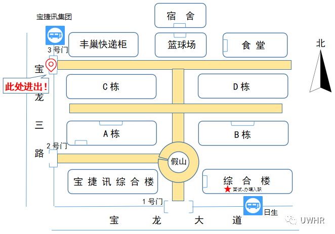 注:疫情防控期间,行人只能从3号门进出