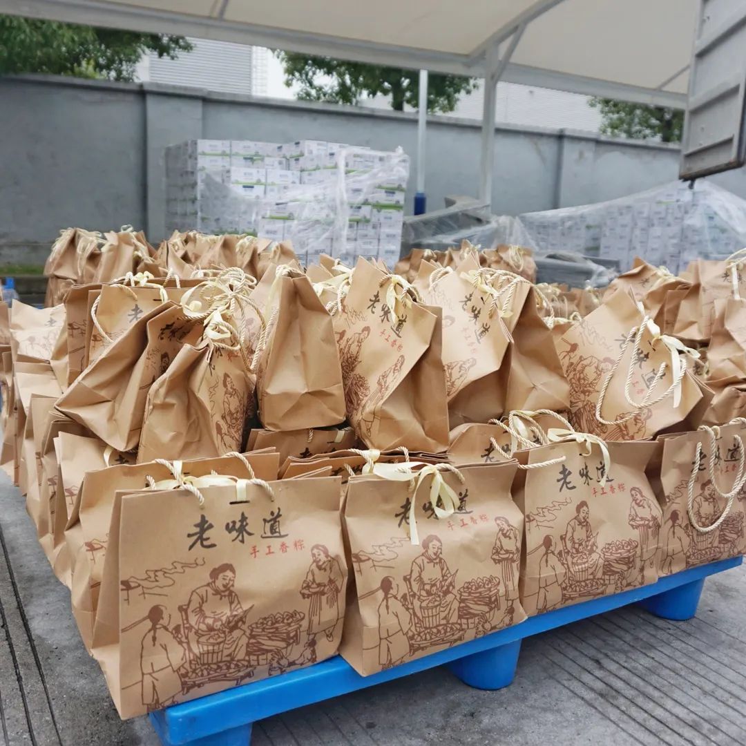 给大家发端午礼品那公司也必须安排呀。礼品准备的品种也很丰富,有各式口味的粽子,有营养的牛奶,好吃的和营养的一次给你满足啦。