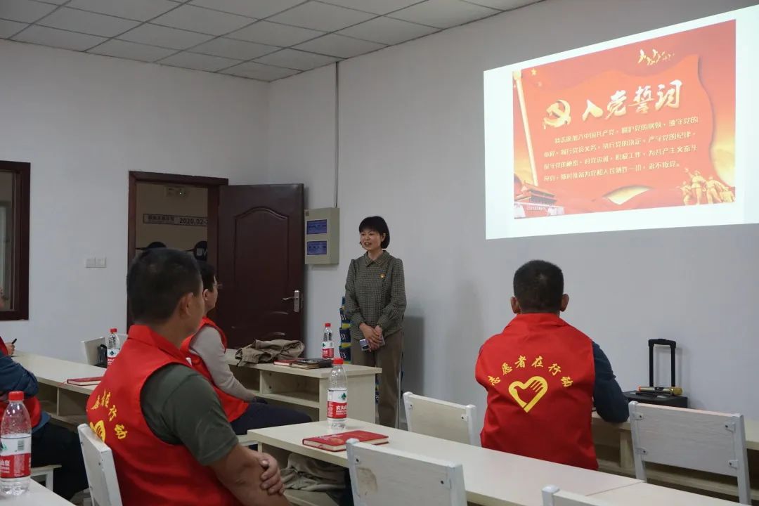 乐鱼leyu激光全体红马甲队员身穿红色志愿服,齐喊口号,集体宣誓:“我志愿加入红马甲队伍,对党忠诚、关爱他人、团结互助、奉献社会。”