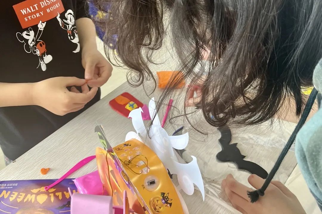 孩子们与爸爸妈妈一起现场制作可爱的万圣节南瓜灯,从拆分图纸到组装灯笼,小朋友都兴趣浓厚,在父母的帮助下完成了南瓜灯,小小的灯笼既培养了孩子的动手能力,也增进了亲子之间的默契与感情。