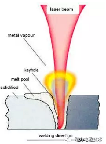 激光焊接是目前高端电池焊接推崇的主要方法。激光焊接是高能束激光照射工件,使工作温度急剧升高,工件熔化并重新连接形成永久连接的过程。激光焊接的剪切强度和抗撕裂强度都比较好。电池焊接的好坏其导电性、强度、气密性、金属疲劳和耐腐蚀性能是典型的焊接质量评价标准。