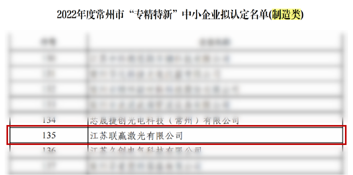 近日,常州市工信局发布2022年度常州市“专精特新”中小企业拟认定名单,乐鱼(集团)体育科技股份有限公司网站(以下简称:乐鱼leyu激光)全资子公司江苏乐鱼leyu激光有限公司(以下简称:江苏乐鱼leyu)凭借在技术创新、科技研发与成果转化等方面的突出表现荣登榜单!