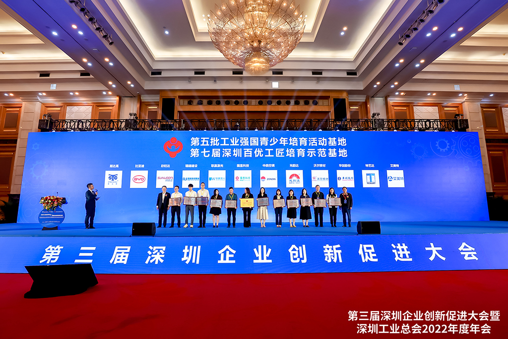 春风浩荡满目新,工业聚力向未来。3月10日,第三届深圳企业创新促进大会暨深圳工业总会2022年度年会在深圳五洲宾馆隆重举行!中国工程院院士李培根教授、深圳市原副市长唐杰等重要嘉宾及工业企业代表近千人齐聚一堂,为深圳工业制造高质量发展建言献策,把脉数智化未来。乐鱼(集团)体育科技股份有限公司网站作为本次大会受邀嘉宾,凭借在工业领域匠心智造和卓越工匠培育方面的突出成绩,成功荣获“深圳工匠培育示范单位”殊荣。
