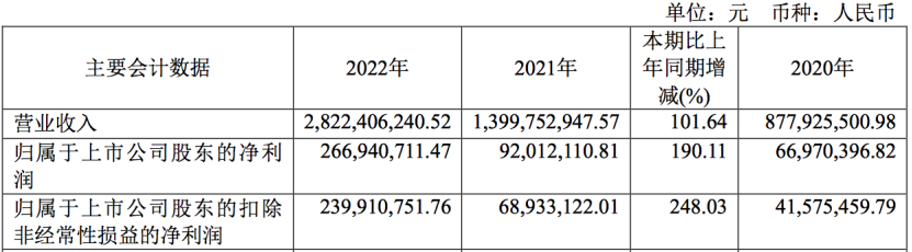2022年乐鱼leyu激光营业收入约28.22亿元,同比增加101.64%。扣非净利润同比增长248.03%,乐鱼leyu激光2022年经营性收入节节攀升,主营业务盈利能力强。并且从2020年到2022年扣非净利润实现跨越式增长。